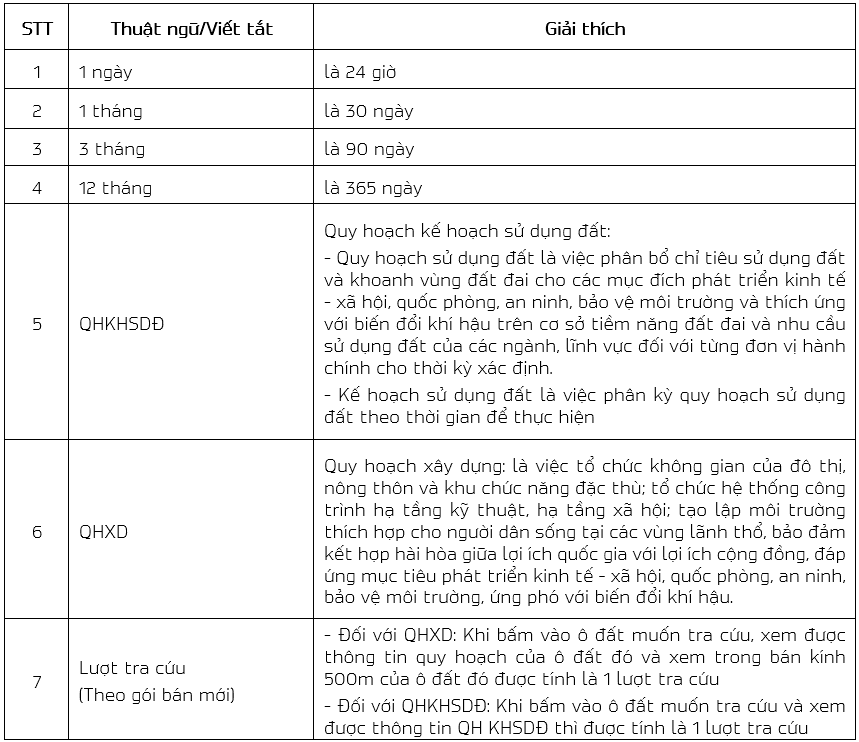 &#x20;   \- Số lượt sử dụng tối đa được tính cho cả lượt xem QHXD và QHKHSDĐ. Gói sản phẩm hết hạn sử dụng khi người dùng sử dụng hết số lượt sử dụng tối đa hoặc hết thời hạn;